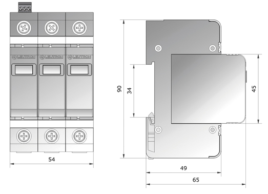 Enheden er konstrueret til hurtig, ren installation på en 35 mm DIN -jernbane pr. 60715 og optager kun 54 mm jernbanerum - ideel til tæt kontrolskabe og eftermonteringsprojekter. Dens IP20 -beskyttelsesgrad (IEC/EN 60529) hjælper med at beskytte operatører under panelarbejde, mens de opretholder kompakthed.