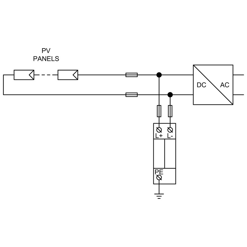 Denne type 2 -overspændingsarrestere beskytter PV -strenge, busbarer og inverterindgange fra kortvarige overspændinger forårsaget af lynbegivenheder eller skifteoperationer. De sikrer ekvipotentialbinding af både positive og negative PV -busbarer og hjælper med at opretholde systemoptagelsestid på tværs af alle lynbeskyttelsesniveauer (LPL I - IV).